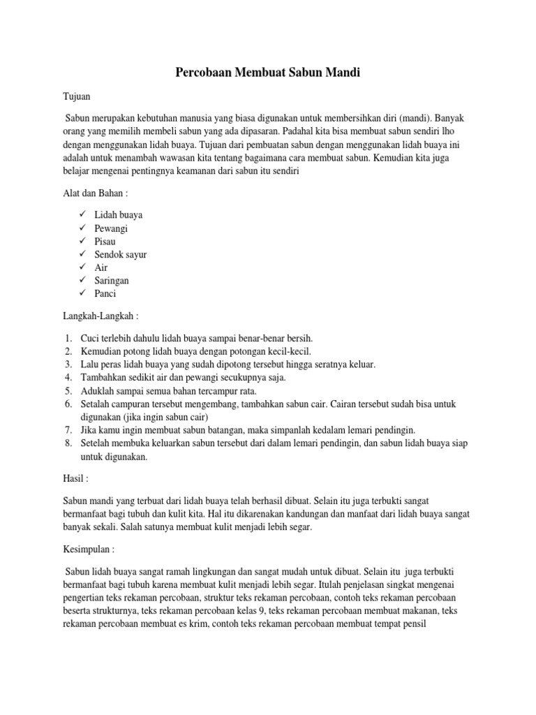 7 Contoh Teks Rekaman Percobaan Singkat untuk Kelas 9 | Struktur …