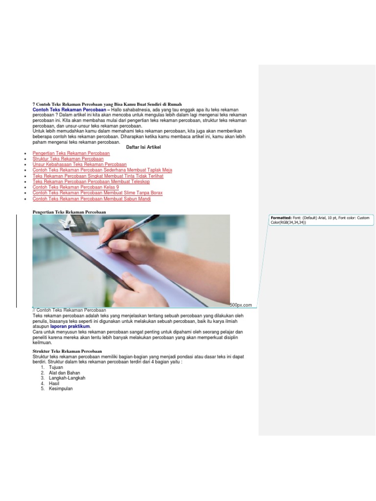 Contoh Teks Rekaman Percobaan Beserta Struktur