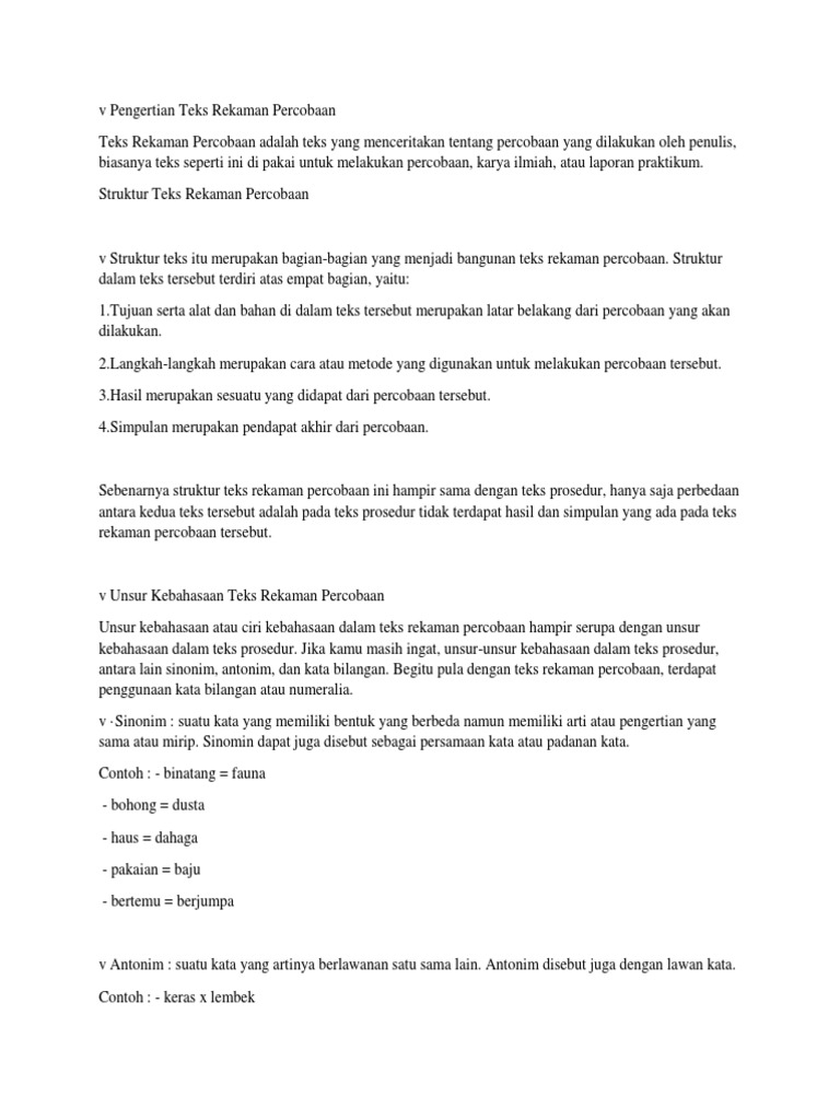 Kumpulan Contoh Singkat Teks Rekaman Percobaan Dan Strukturnya …