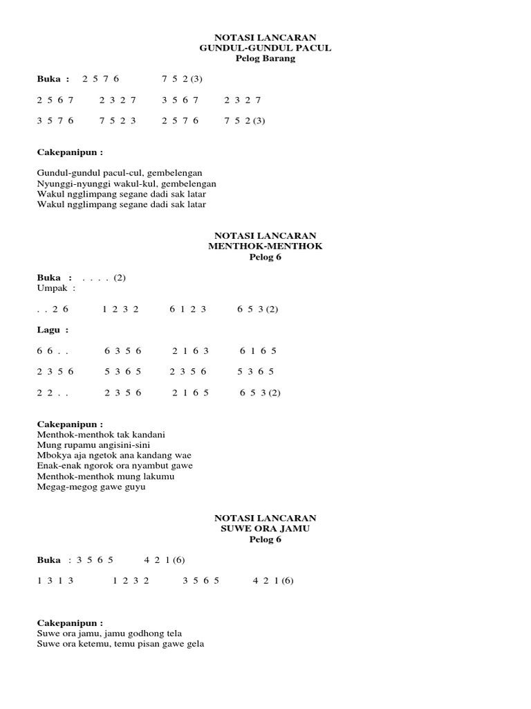 tuliskan not angka lagu suwe ora jamu! - Brainly.co.id