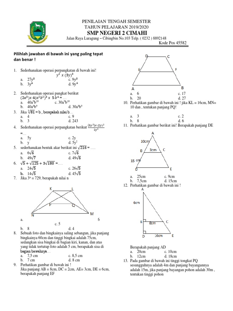 Smp Negeri 2 Cimahi: Pilihlah jawaban di bawah ini yang paling tepat dan benar !