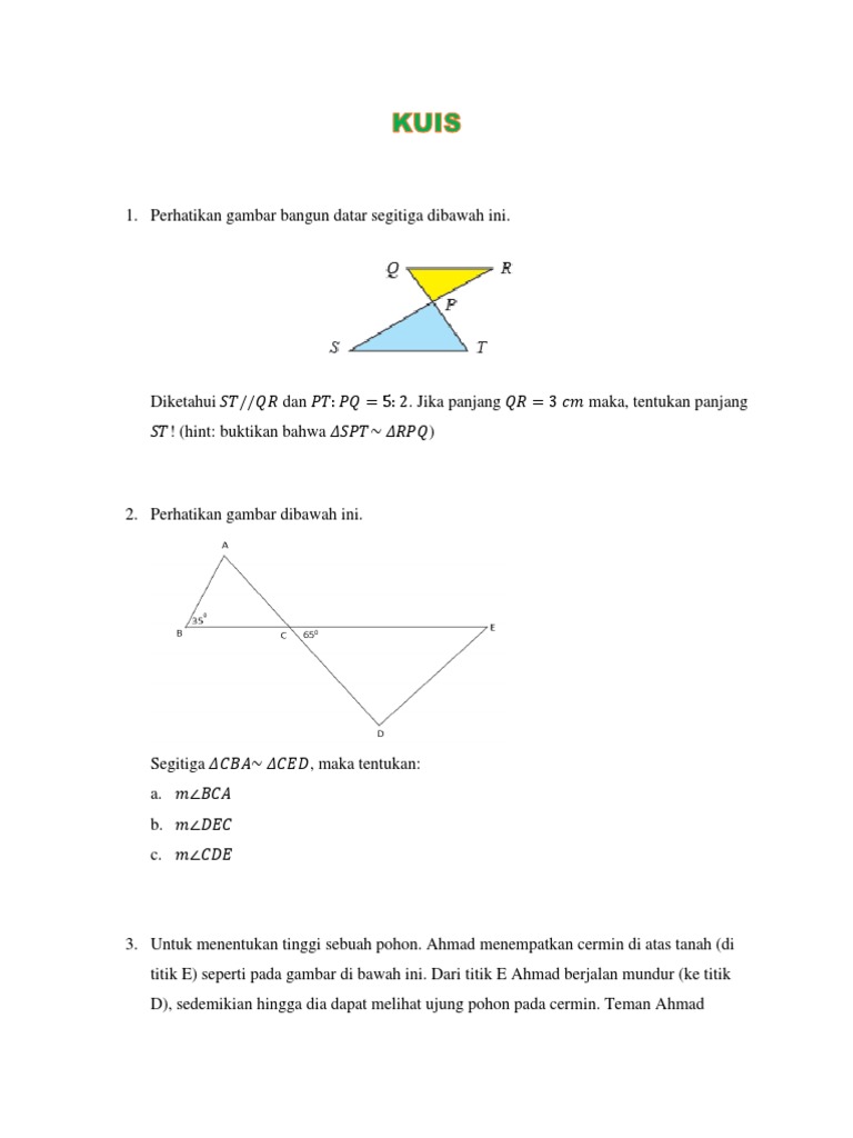 PDF) Latihan Soal Kelas IX: Kesebangunan dan Kekongruenan | fauzan asyidik - Academia.edu