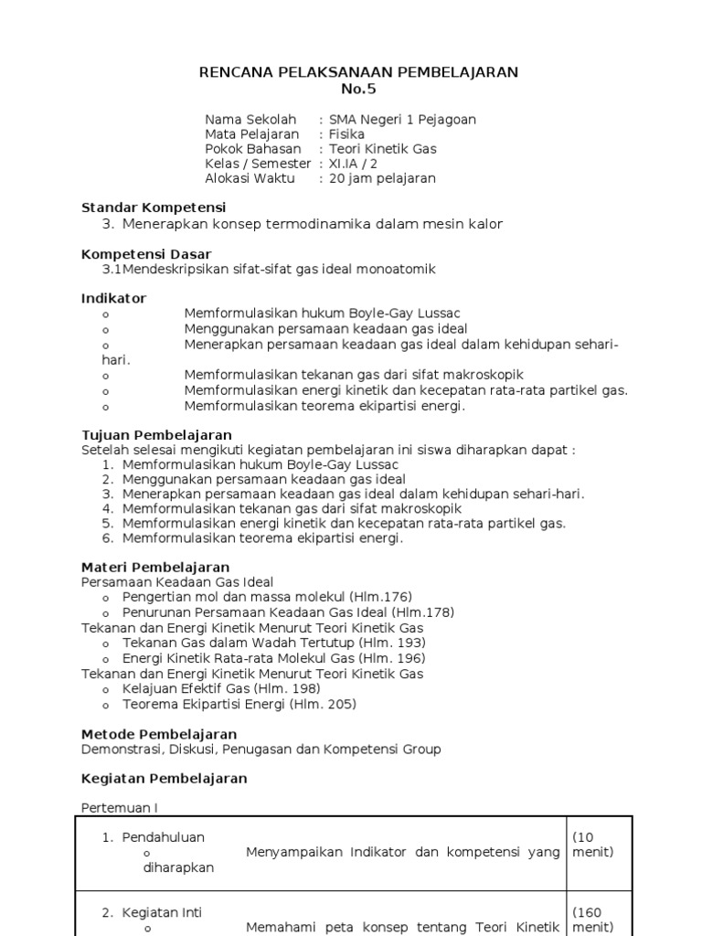 PDF) RPP Teori Kinetik Gas dan Termodinamika | Rizki Zakwandi - Academia.edu