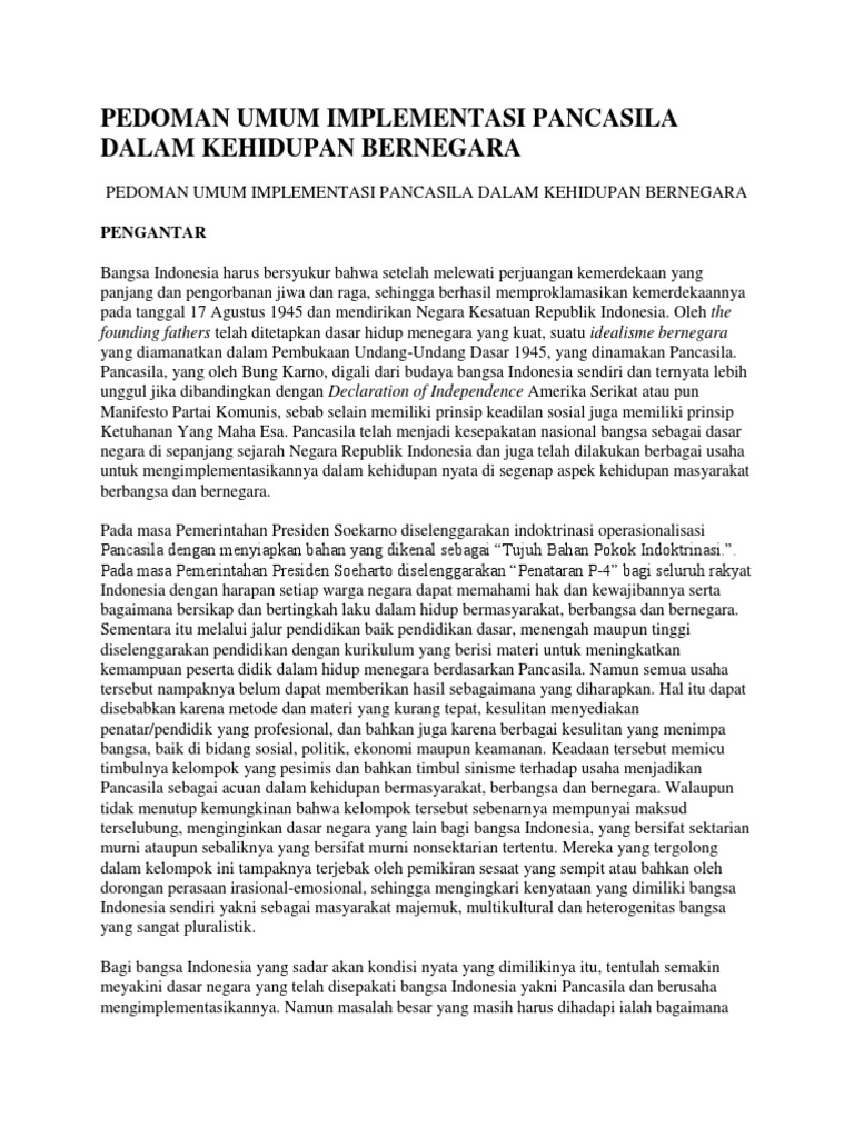 Pedoman Umum Implementasi Pancasila Dalam Kehidupan