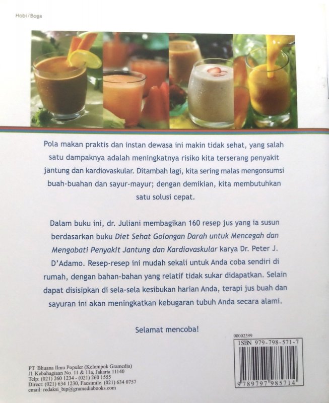160 Jus Buah & Sayur Diet Sehat Golongan Darah Untuk Mencegah Dan Mengobati Penyakit Jantung & Kardiovaskular (disc 50%)