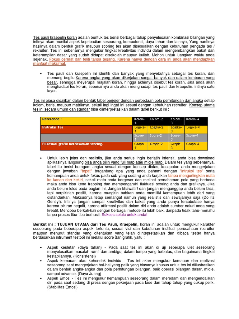 Cara Mengerjakan Tes Kraepelin Koran Dan Tes Pauli
