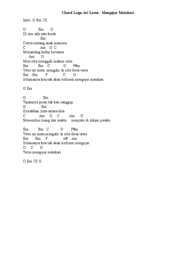 Lirik Lagu Ari Lasso - Mengejar Matahari + CHORD GITAR