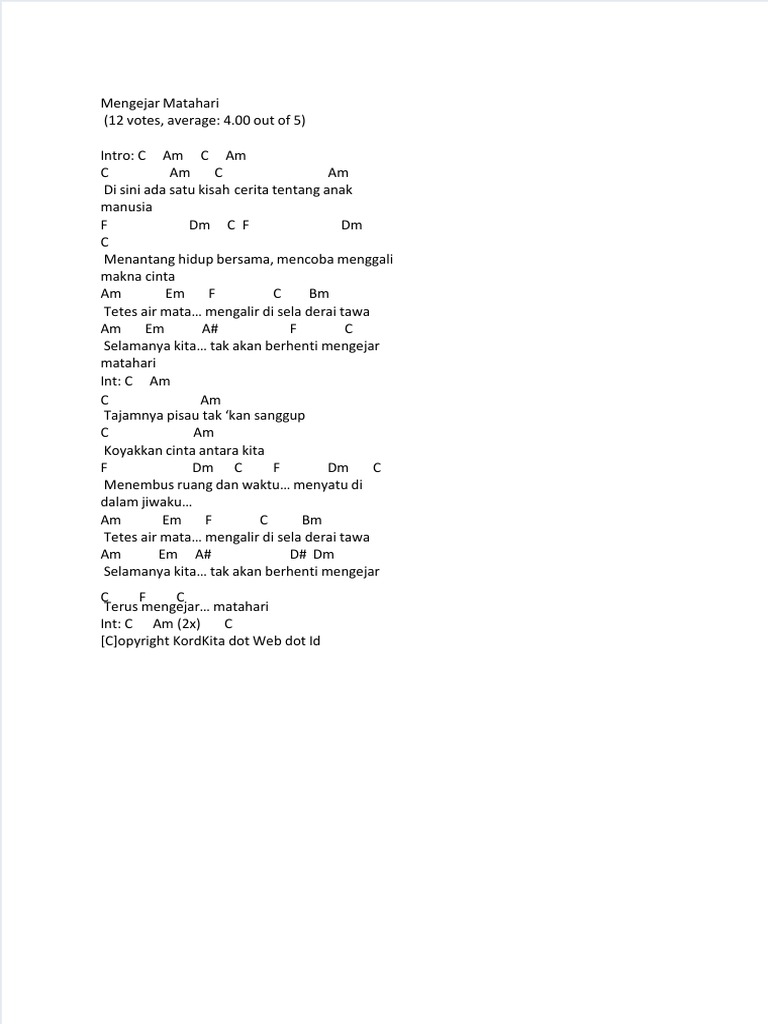 Kord Gitar Mengejar Matahari | Song Forms | Musicology
