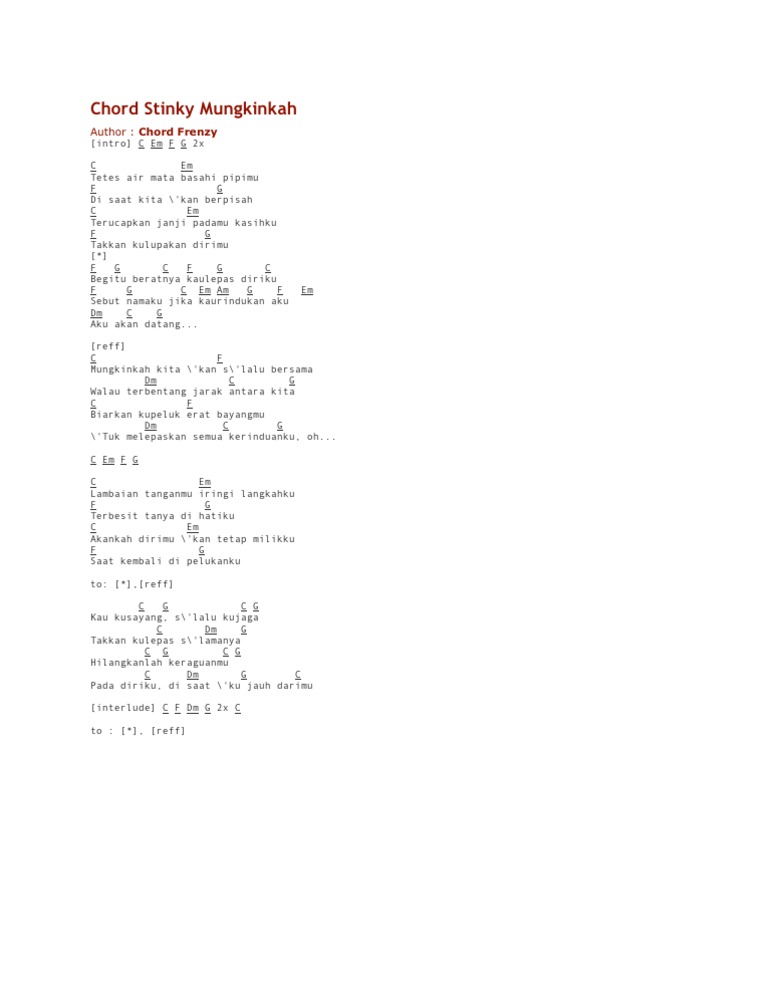 lirik lagu stinky mungkinkah Chords - Chordify