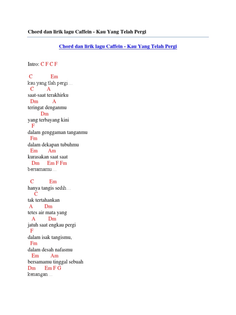 Chord Dan Lirik Lagu Caffein - Kau Yang Telah Pergi