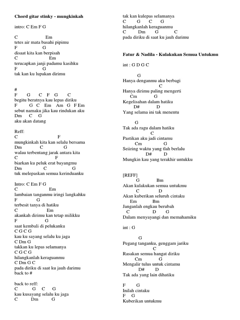 Lirik Lagu Stinky Mungkinkah Chord Gitar Stinky Mungkinkah