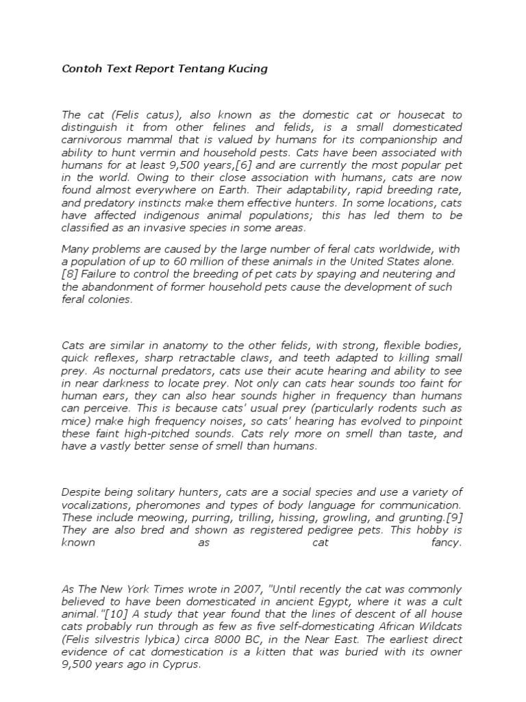 Contoh Report Text Singkat Tentang Kucing Beserta Artinya Temukan …