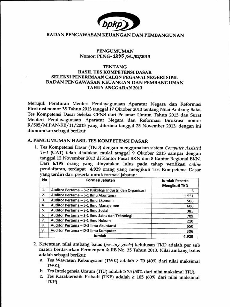 Ketentuan Pengumuman Lolos Tahap SKD ke SKB - Info Pendaftaran …