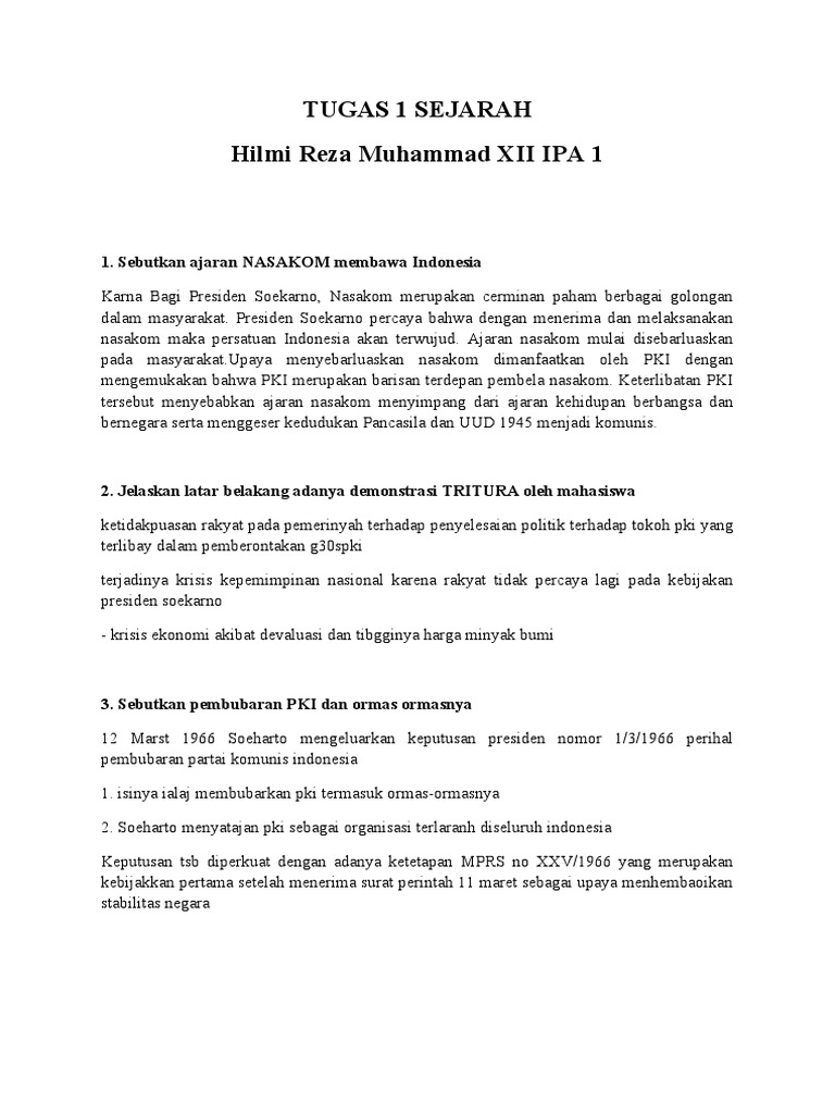 Kelas 12 SMA Sejarah Indonesia Siswa