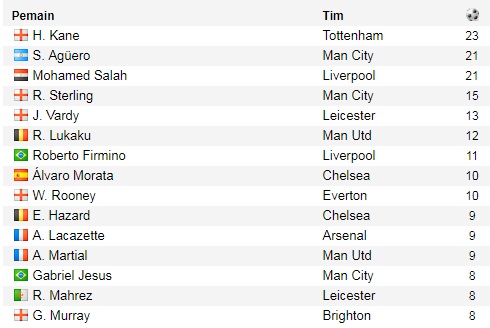 Info Bola Lengkap 2019: Top Skor Liga Inggris Terbaru