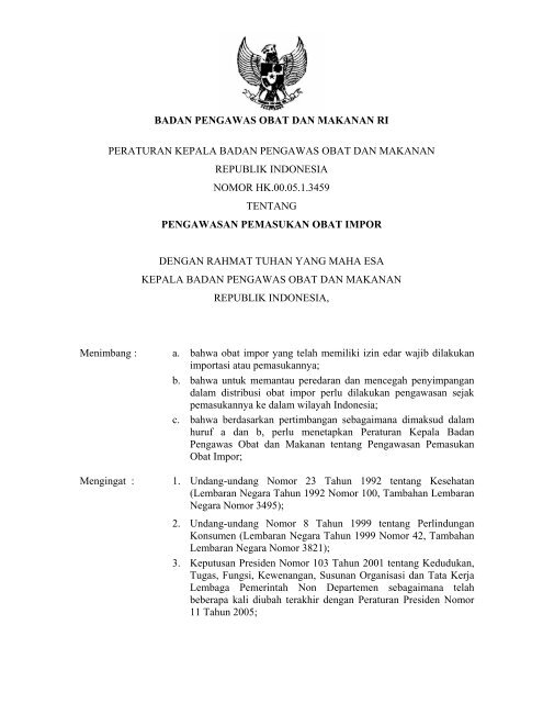 BADAN PENGAWAS OBAT DAN MAKANAN RI PERATURAN …