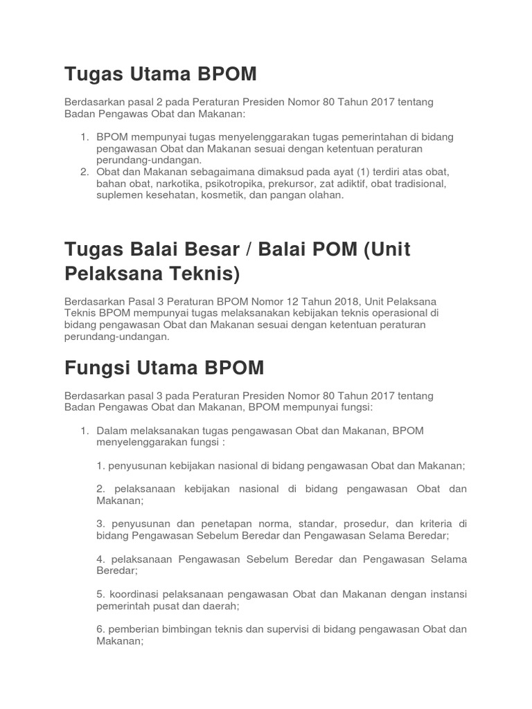 Tugas Dan Fungsi Badan Pengawas Obat Dan Makanan