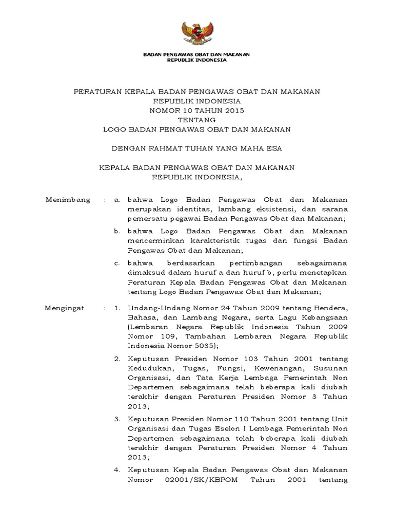 Peraturan KBPOM Nomor 10 Tahun 2015 Tentang Logo Badan POM