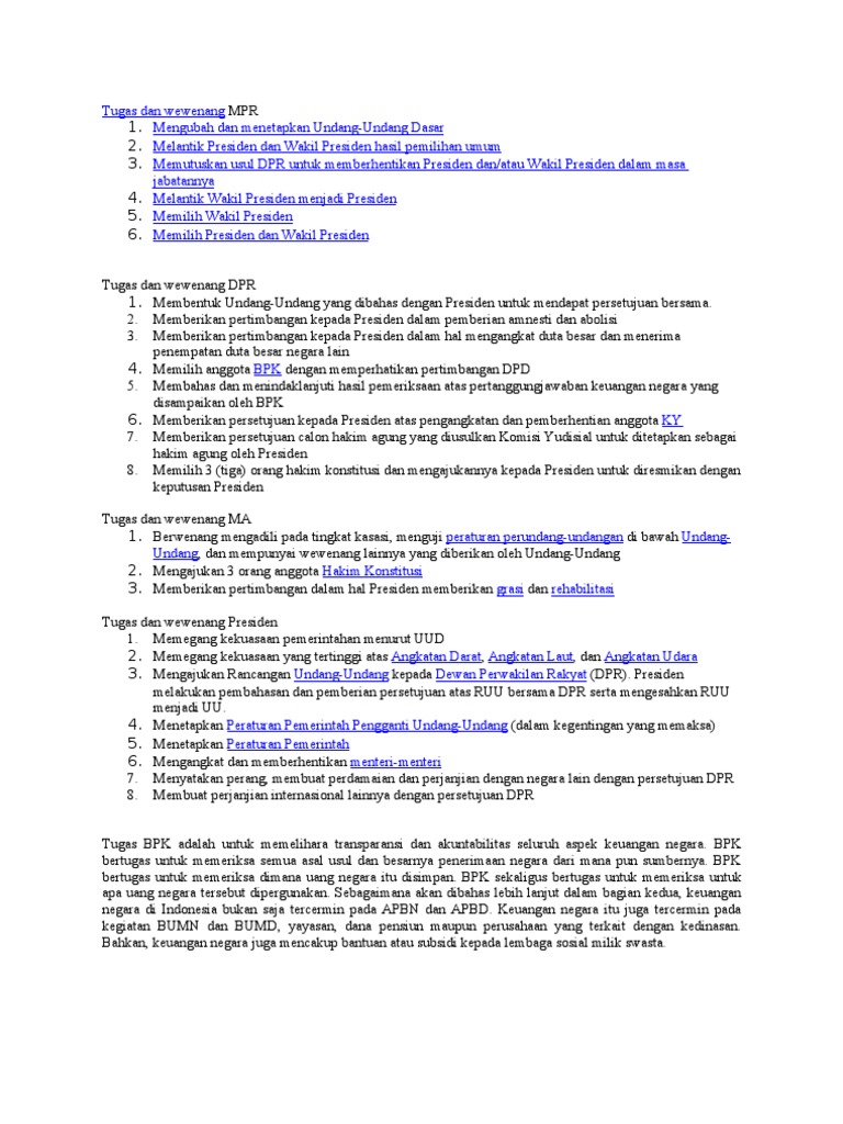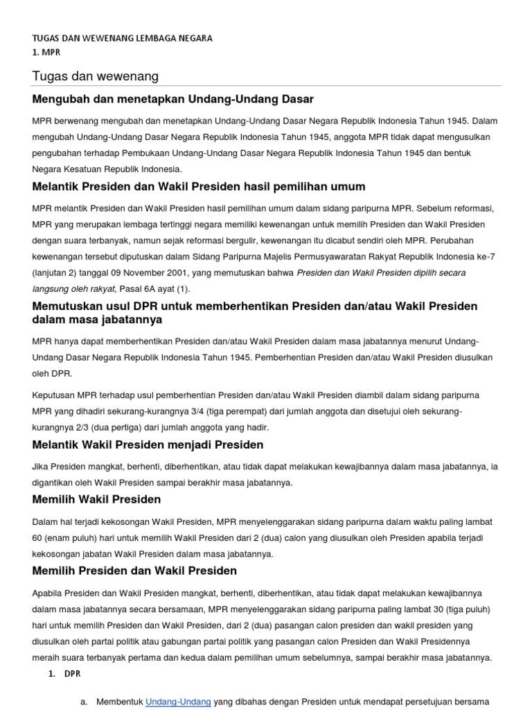 Tugas Dan Wewenang Lembaga Negara