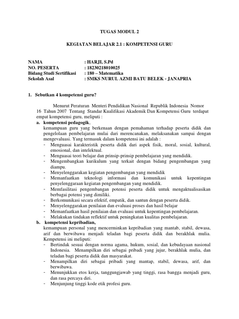 Soal dan Kunci Jawaban Tes Formatif Modul 1 KB 2 PPG 2020 - nyumplik.com