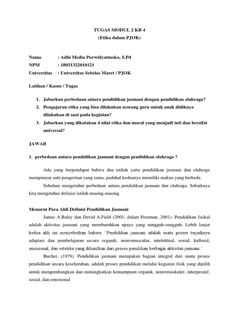 Kunci Jawaban Formatif Modul 6 Kb 2 Penjasked – IlmuSosial.id