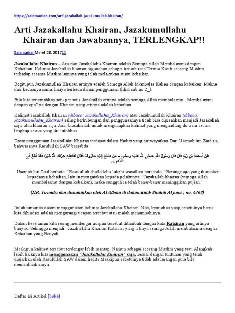 Arti Jazakallahu Khairan - Arab, Hadits, dan Jawaban | Freedomsiana