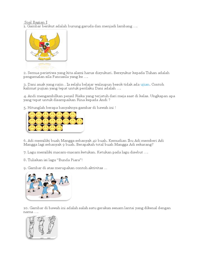 soal tematik kelas 1 tema 5 sub tema 1