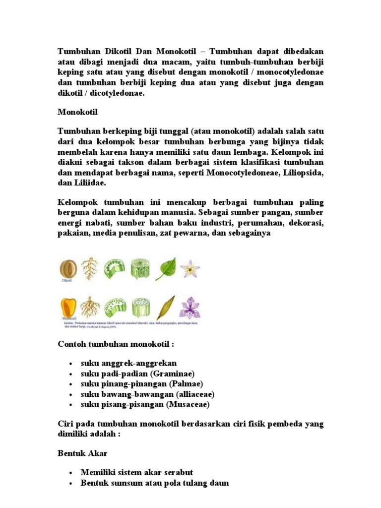 Penjelasan Ciri-Ciri dan Contoh Tumbuhan Monokotil dan Dikotil …