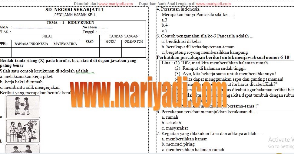Lengkap - Contoh Soal UH / PH untuk kelas 2 SD/MI Tema 2 Subtema 1 …