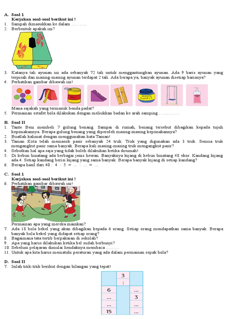 SOAL UAS KELAS 2 TEMA 2 - BERMAIN DI LINGKUNGANKU