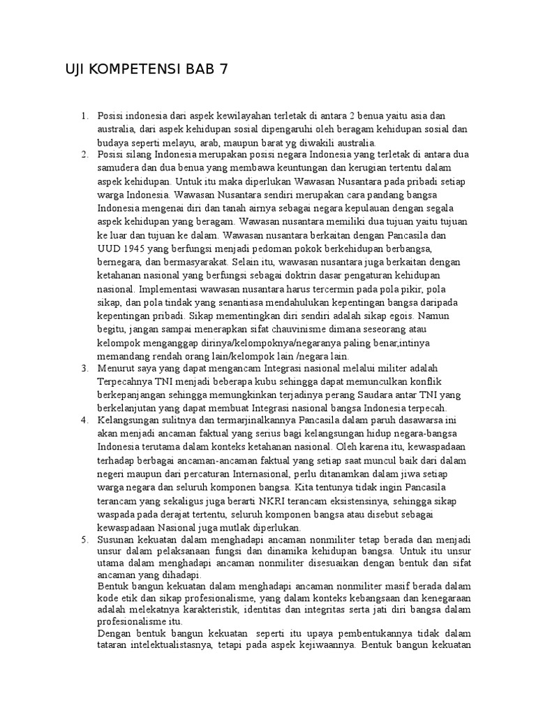 Uji Kompetensi Bab 7 Pkn Kelas 11