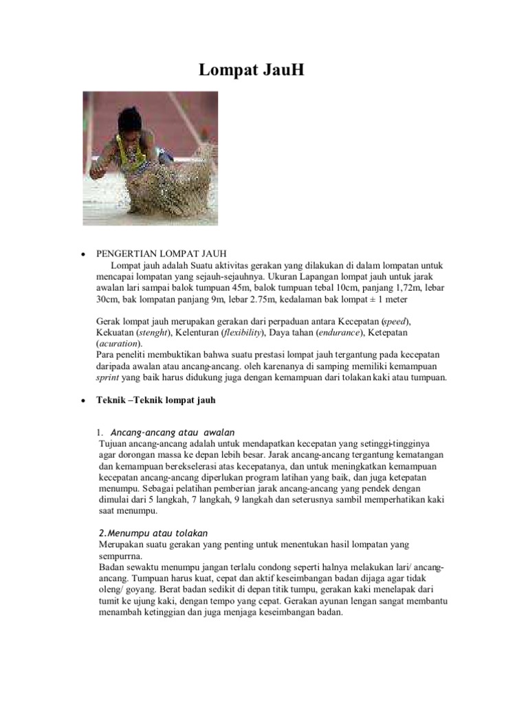 LOMPAT JAUH : Pengertian, Sejarah, Lapangan & Teknik Dasar Lompat …