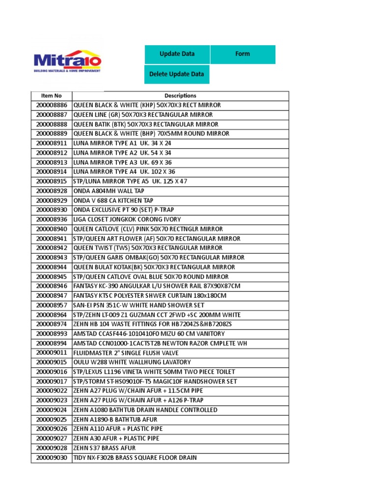 Assortment Monitoring Form Ver 1.0 | Tap (Valve) | Sink