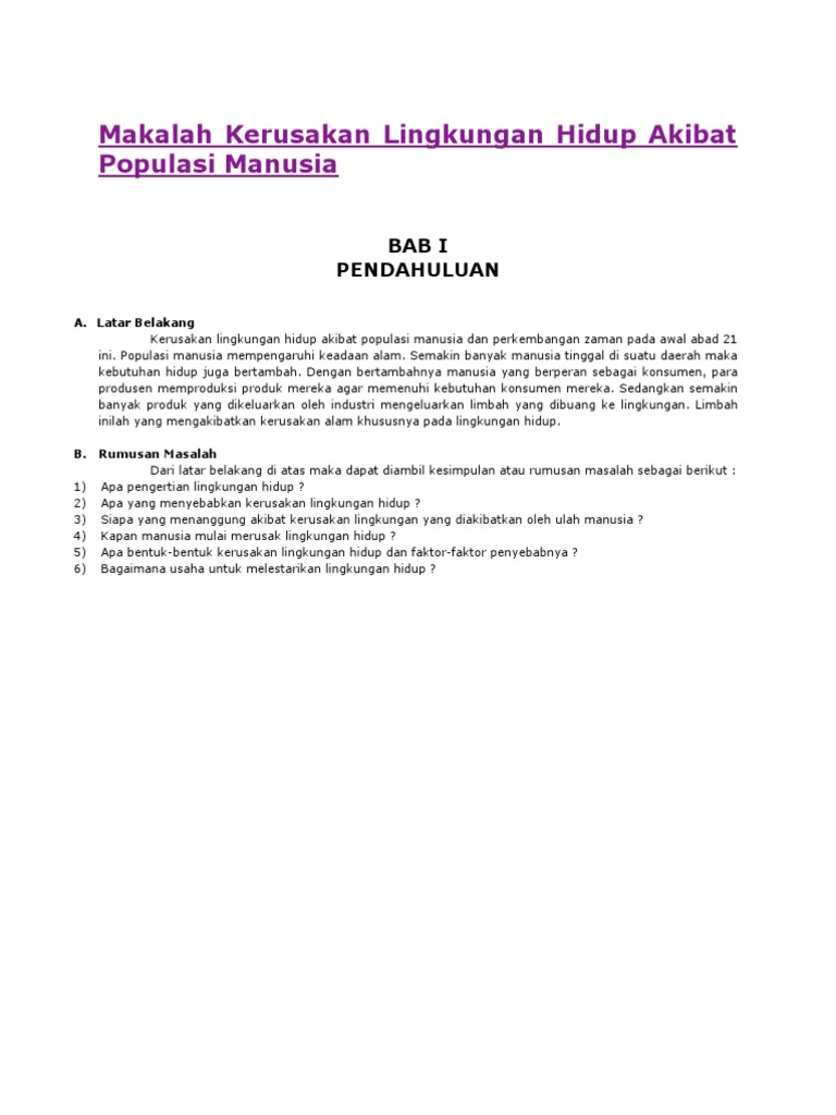 Makalah Kerusakan Lingkungan Hidup Akibat Populasi Manusia - [DOCX …