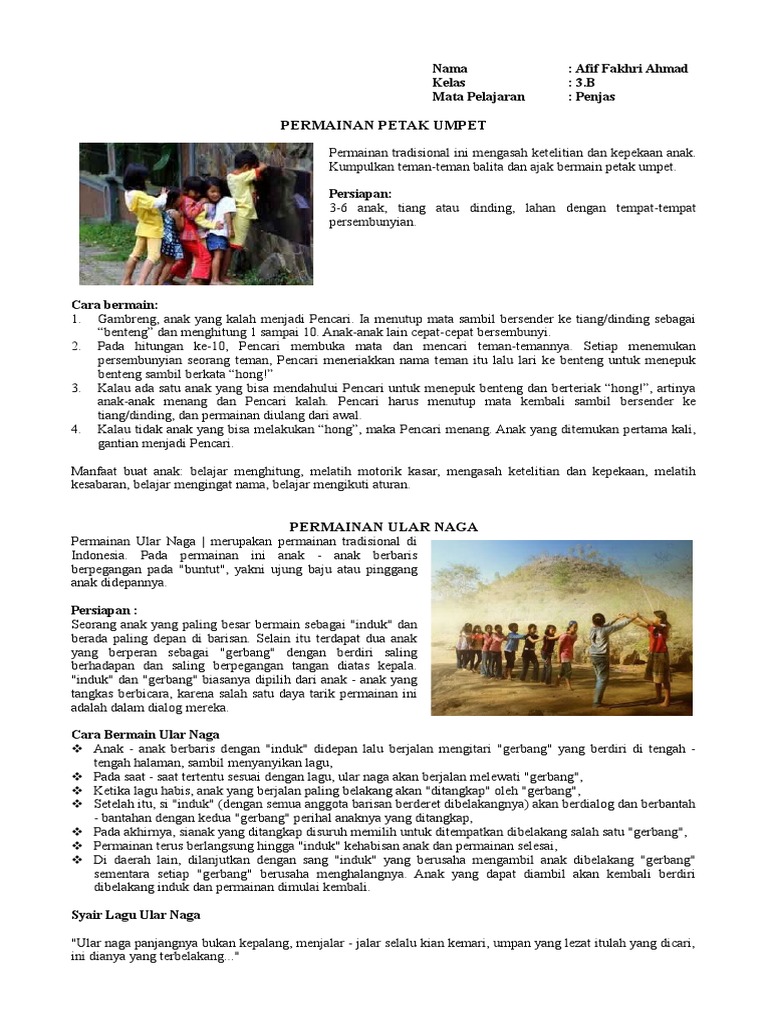 Permainan Petak Umpet: Nama: Afif Fakhri Ahmad Kelas: 3.B Mata …