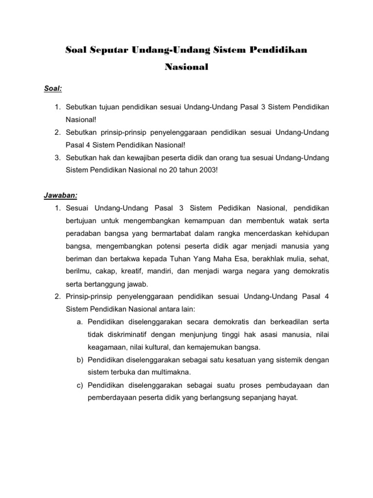 Soal Seputar Undang-Undang Sistem Pendidikan Nasional