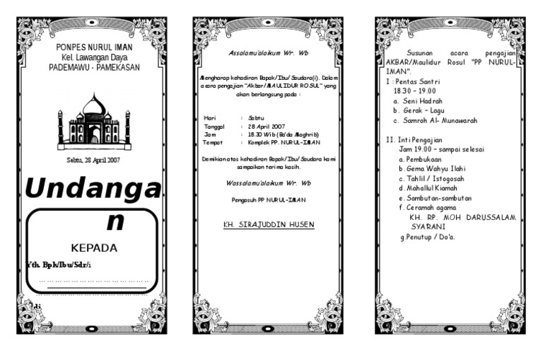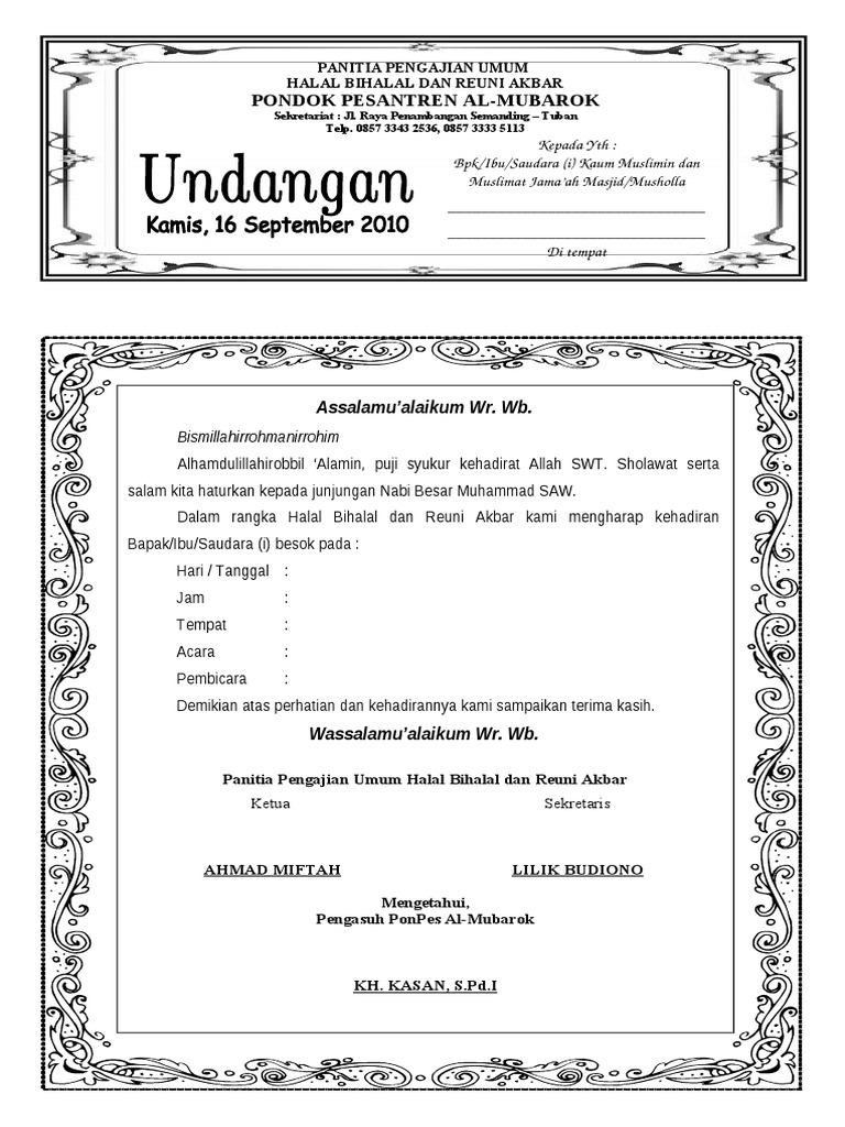 CONTOH UNDANGAN PENGAJIAN BULANAN | Majlis Ta’lim Miftahul Ulum …