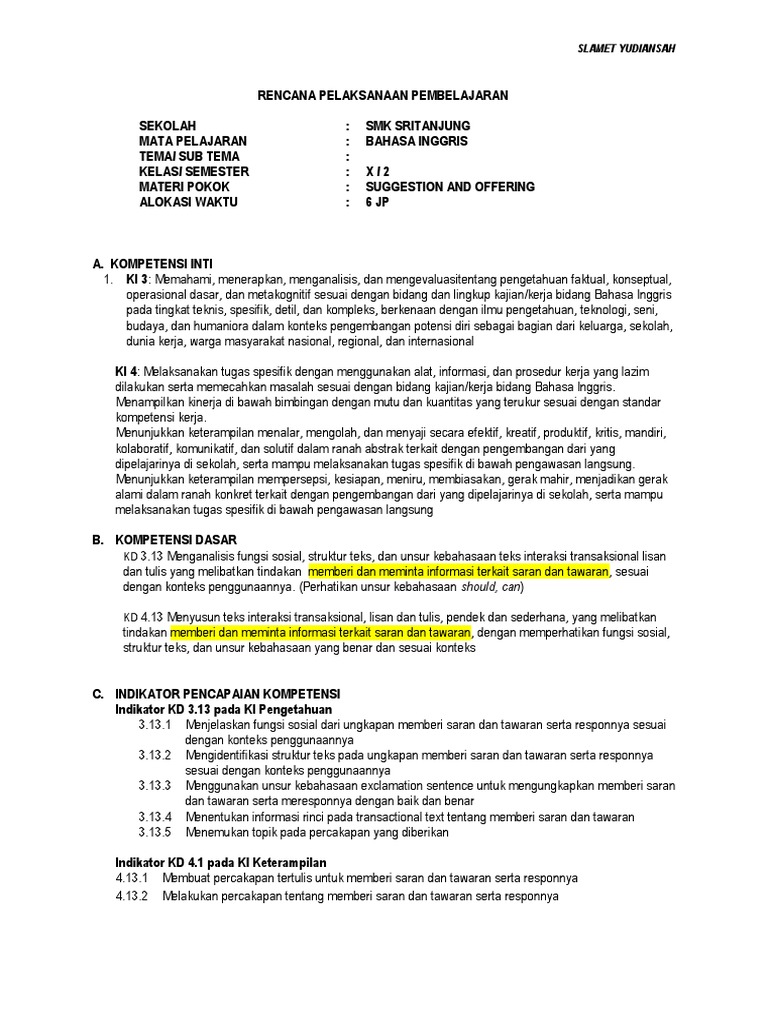DOC) RPP kurikulum 2013 saran dan penawaran | Dedi Setiawan - Academia.edu