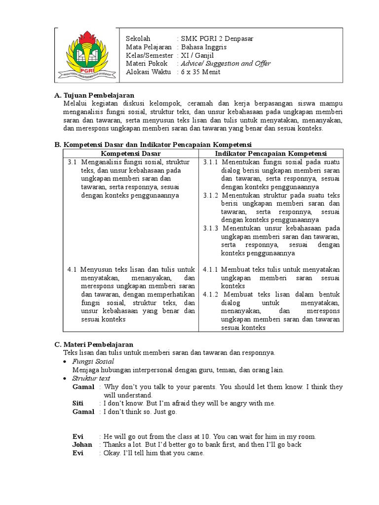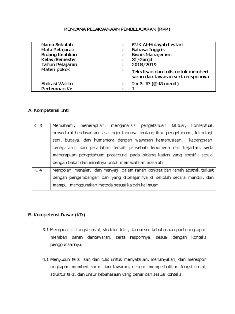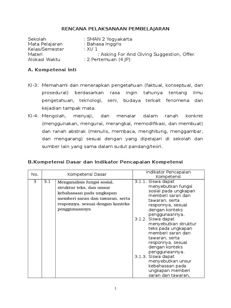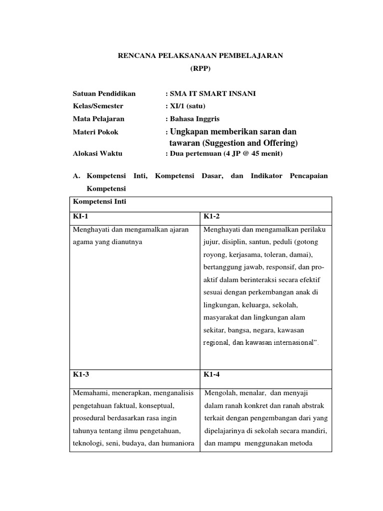 Rpp Bahasa Inggris SMK kelas XI suggestion and offering - [PDF Document]