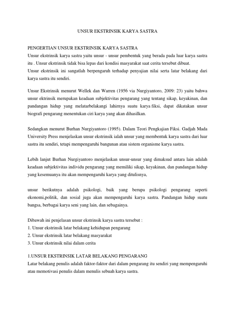 DOC) Unsur-unsur Intrinsik dan Ekstrinsik Karya Sastra | Anggie …
