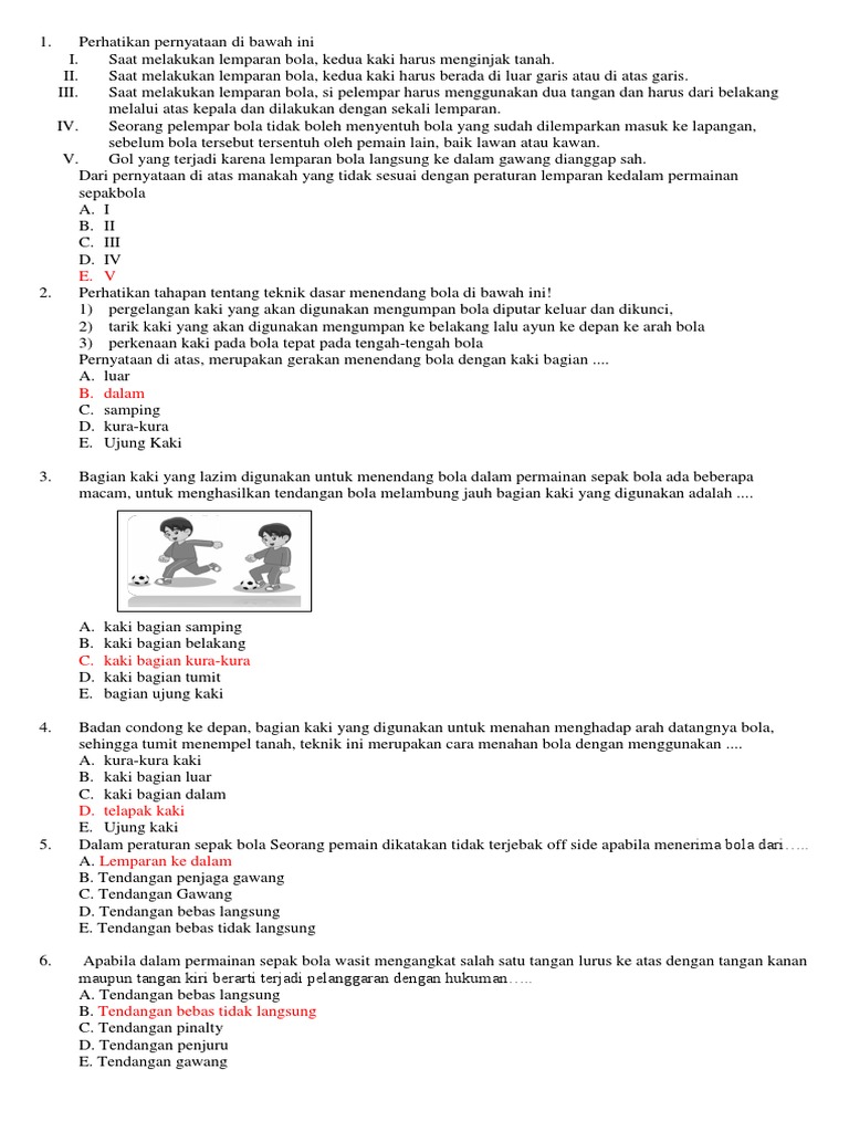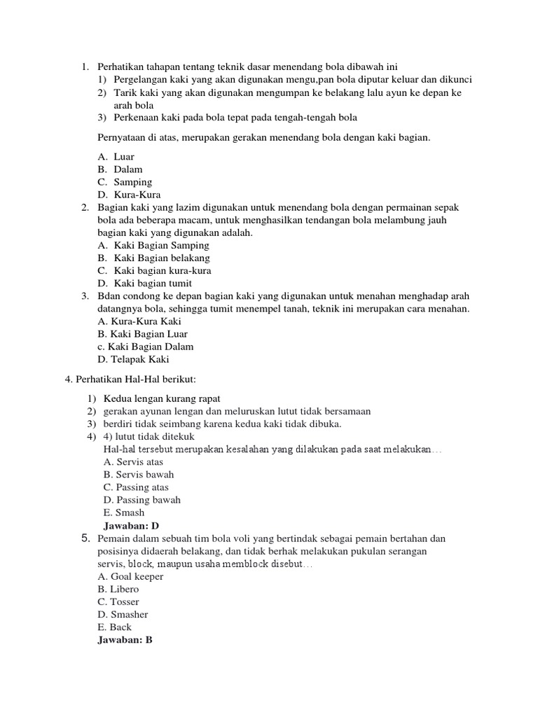 Soal PJOK Kelas 5 SD/MI Kurikulum 2013 Semester 1 dan Kunci …