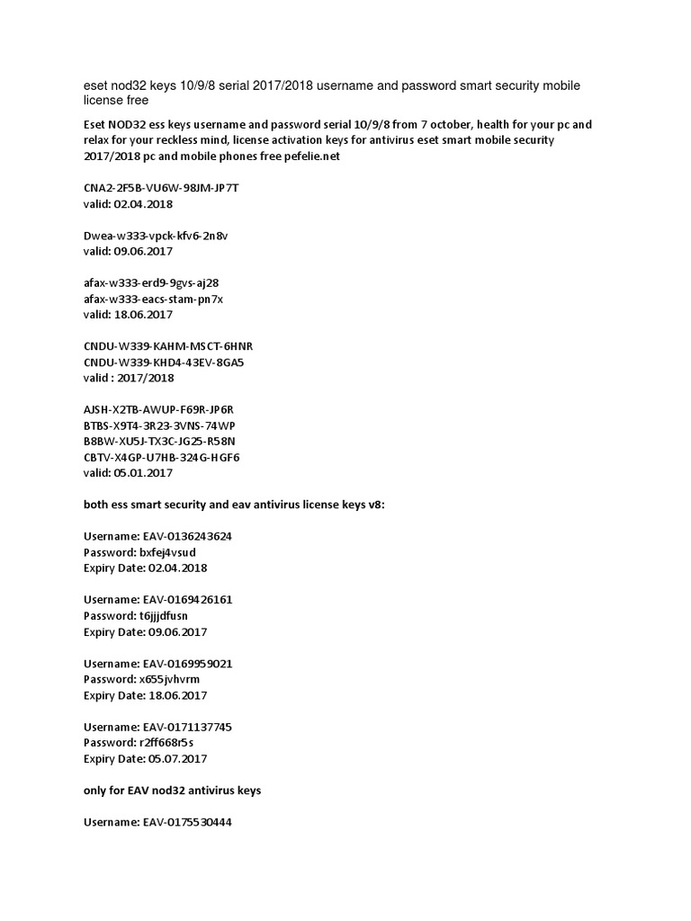 DEAS-W33H-CD4U-UAB2-WW5F - Eset Nod32 Antivirus Username and …