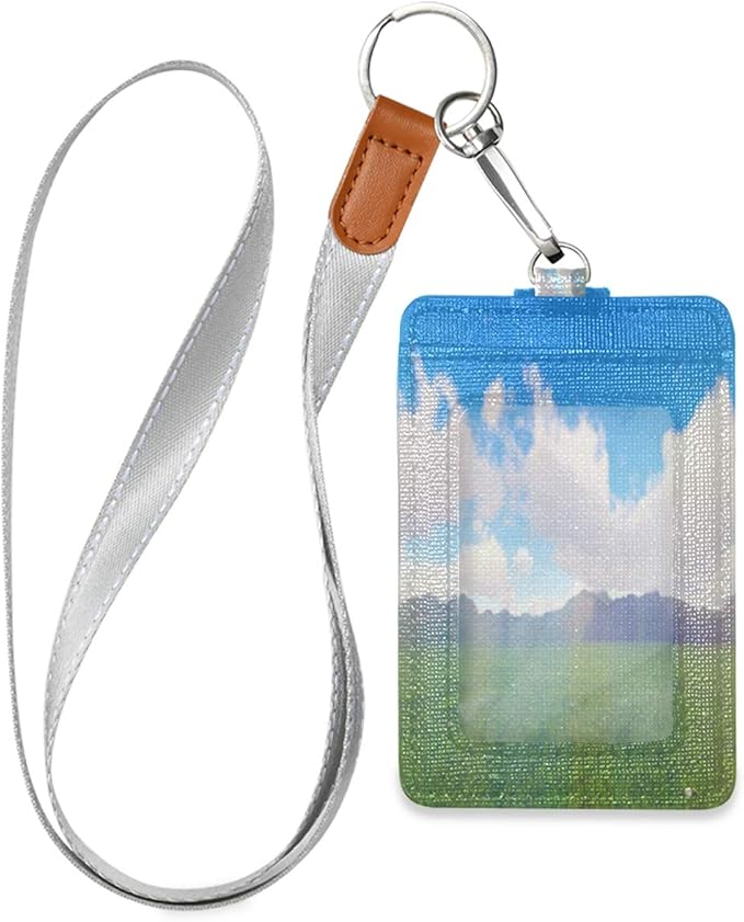 Amazon.com : Green Landscape Field Vector Id Badge Holder Leather …
