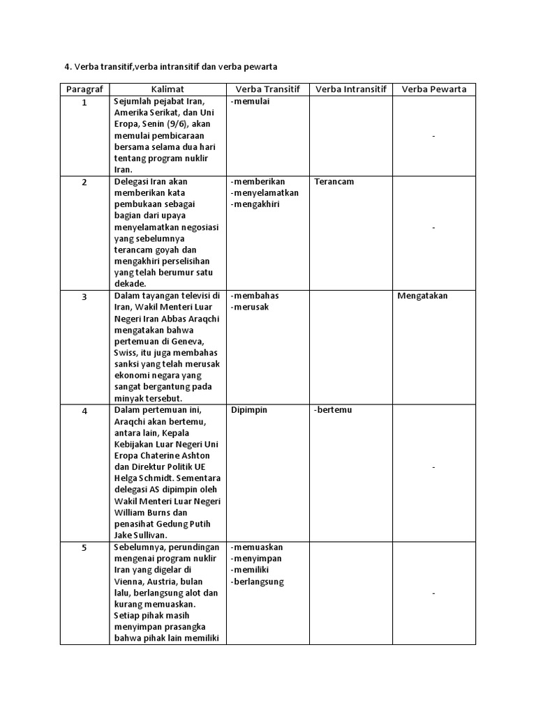Paragraf Kalimat Verba Transitif Verba Intransitif Verba Pewarta 1