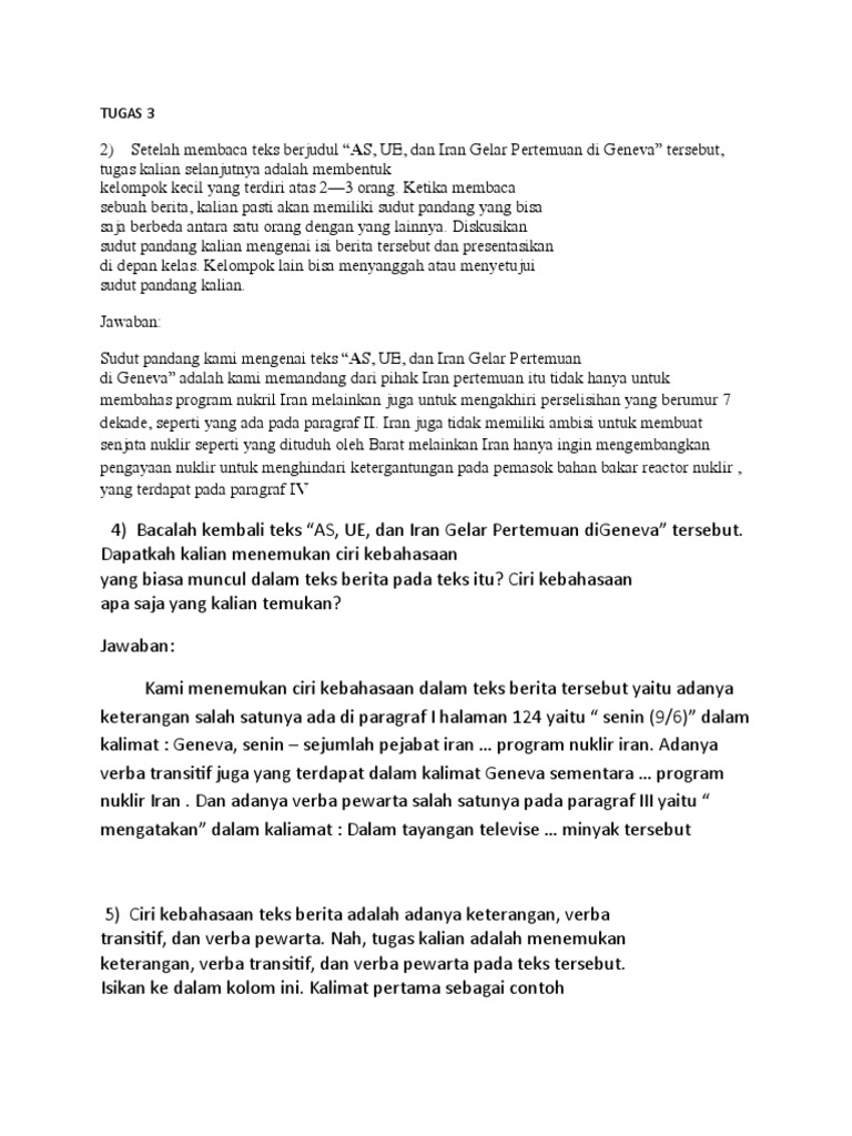 Tugas 1 Mengevaluasi Teks Berita Berdasarkan Ciri Kebahasaan Beserta Jawabannya - Solidar Aslaemi