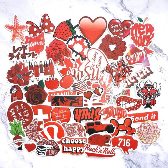 Red Aesthetic Premium Vinyl 50 pc. VSCO Sticker Pack Water | Etsy