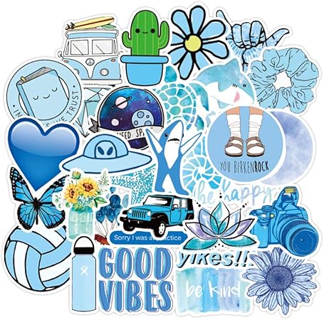 Amazon.com: 50 Pcs Blue VSCO Cute Vinyl Stickers for Laptop Computer Phone Water Bottle Skateboard Luggage Flask Car Cool Anime Trendy Waterproof Stickers Pack Gift Teens Girls: Computers & Accessories