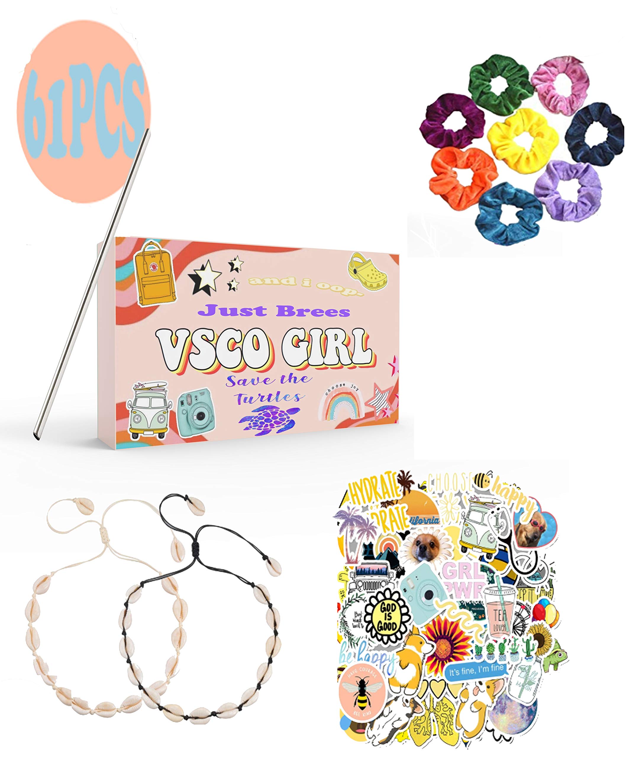 AMZONDEALER1217 61 Pcs Vsco Girls Stuff Starter Pack - 8 Hair Scrunchies -Gift for Teen Teenager- 2 Puka Shell Bracelets and Cute Teen Girl Waterproof Stickers- Buy Online in Aruba at aruba.desertcart.com. ProductId : 164407724.