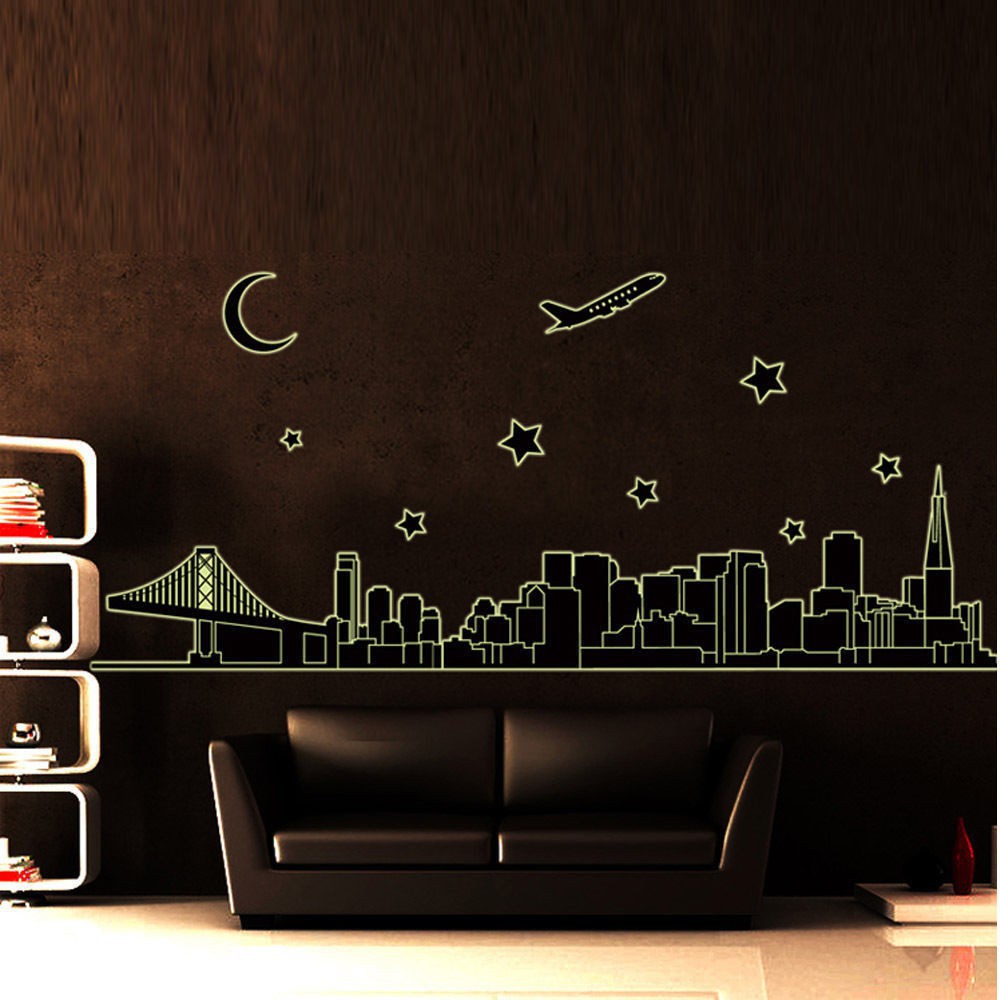 Stiker Dinding Kota Malam Hari Bisa Dilepas Menyala Dalam Gelap | Shopee Indonesia