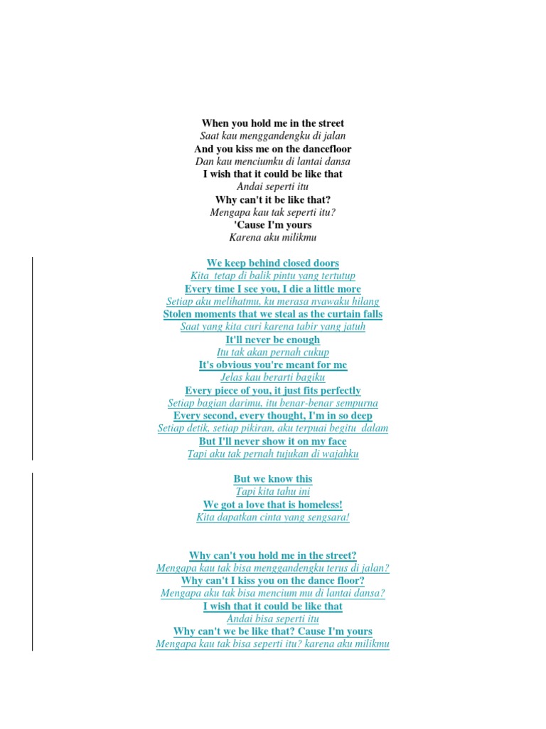 Why can’t you hold me in the streets? Why can’t i kiss you on the …